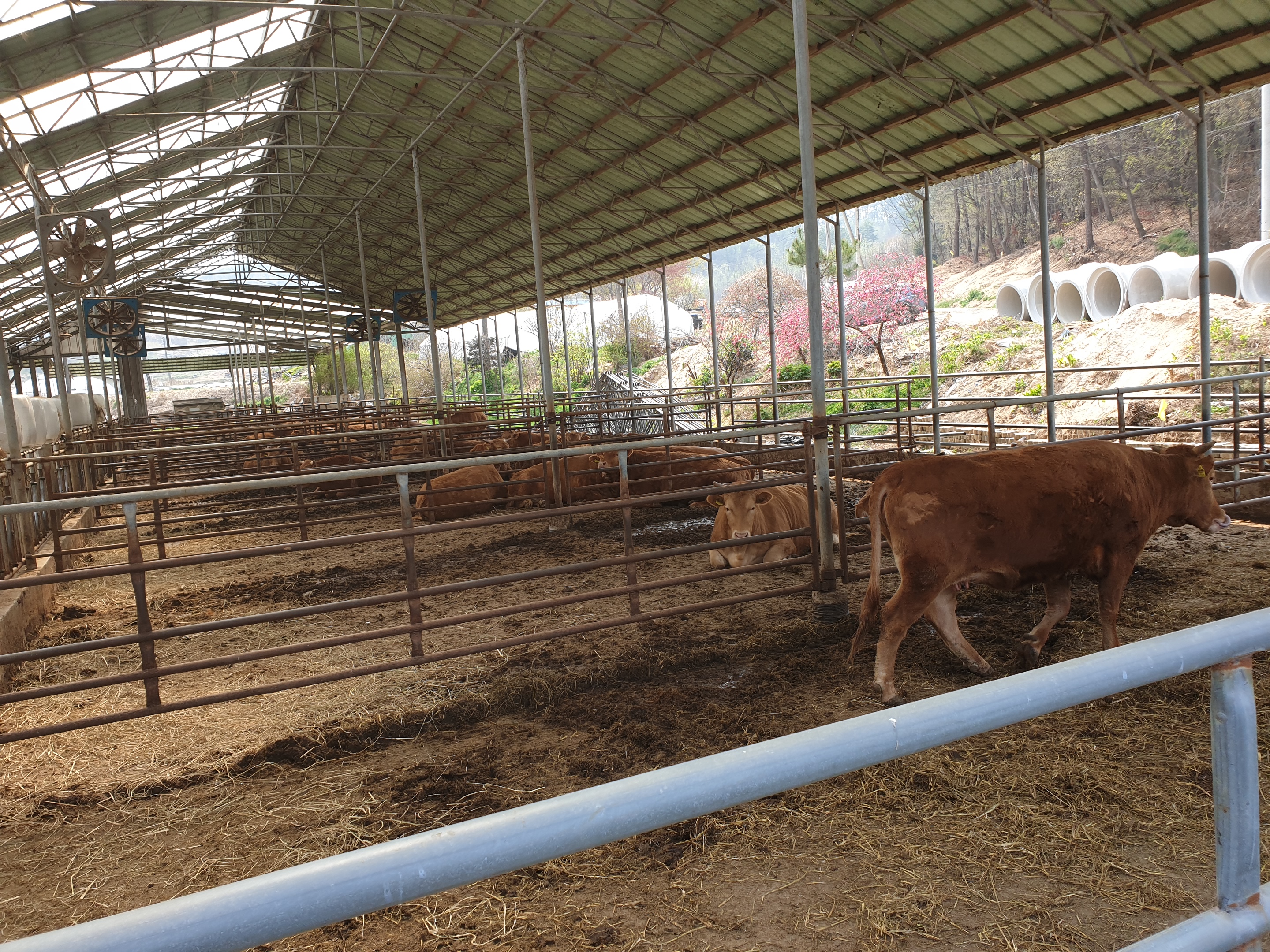 주차장 바로 앞은 소 우리가 있는데요.