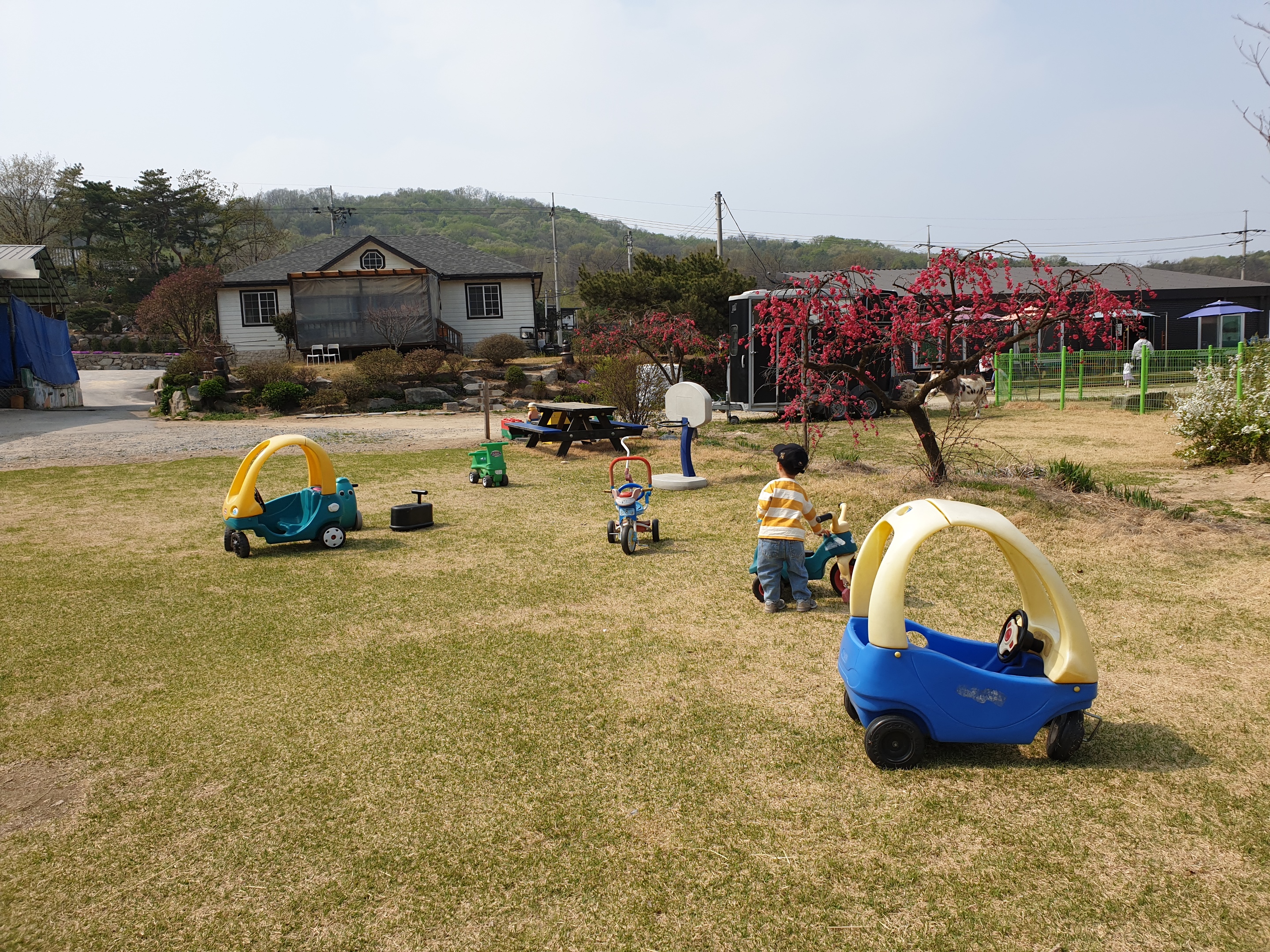 잔디밭이라서 다칠 위험은 없지만, 자동차를 끌고 다니기에는 불편하더라고요.