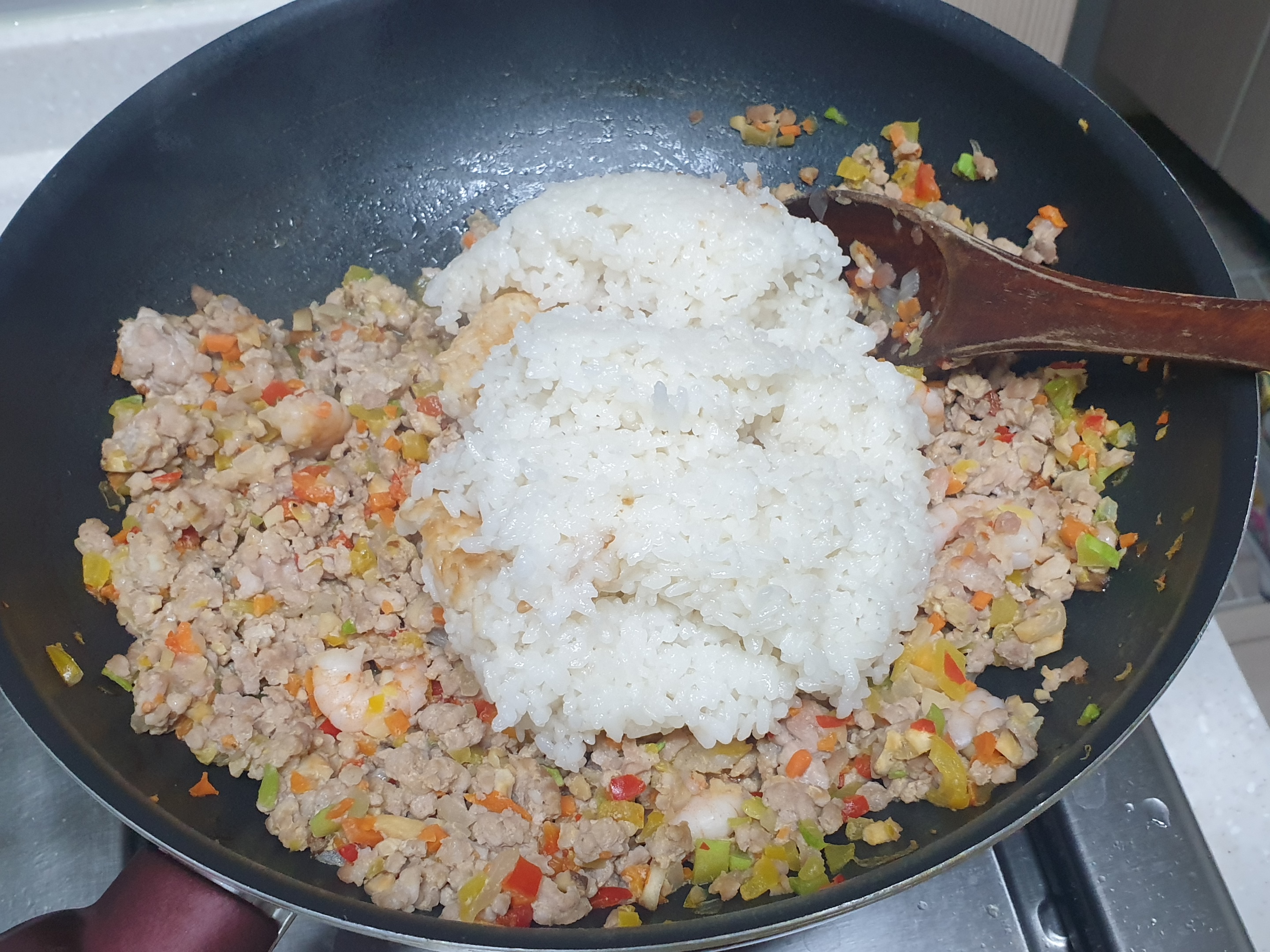 3) 마지막으로 밥을 넣고 볶아줍니다.