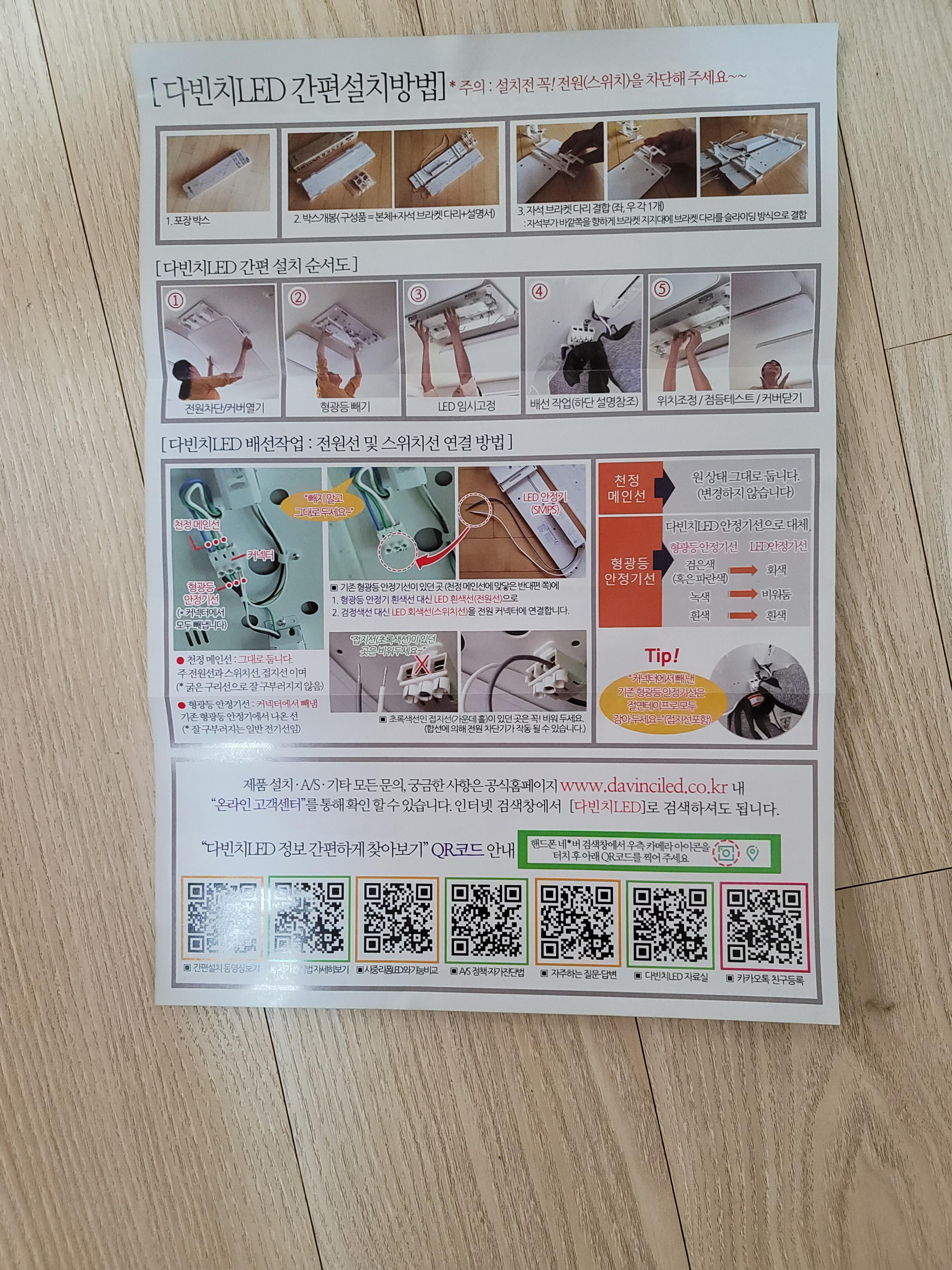 저희는 55w 2등용으로 구매했습니다. 다빈치LED는 일단 강력 자석이 천장과 결합되기 때문에 별도의 피스 작업이 필요없습니다. 자석을 LED등에 끼워주신 후에 배선 작업만 해주시면 됩니다. 배선 작업이라고 하면 학을 떼는 저와 같은 문과님들도 어렵지 않습니다. 그냥 선을 빼고 끼워주시면 됩니다. 항상 문제는 어떤 선을 어디에 연결하는지를 헷갈리는 것인데요. 그것도 생각보다 쉽습니다.