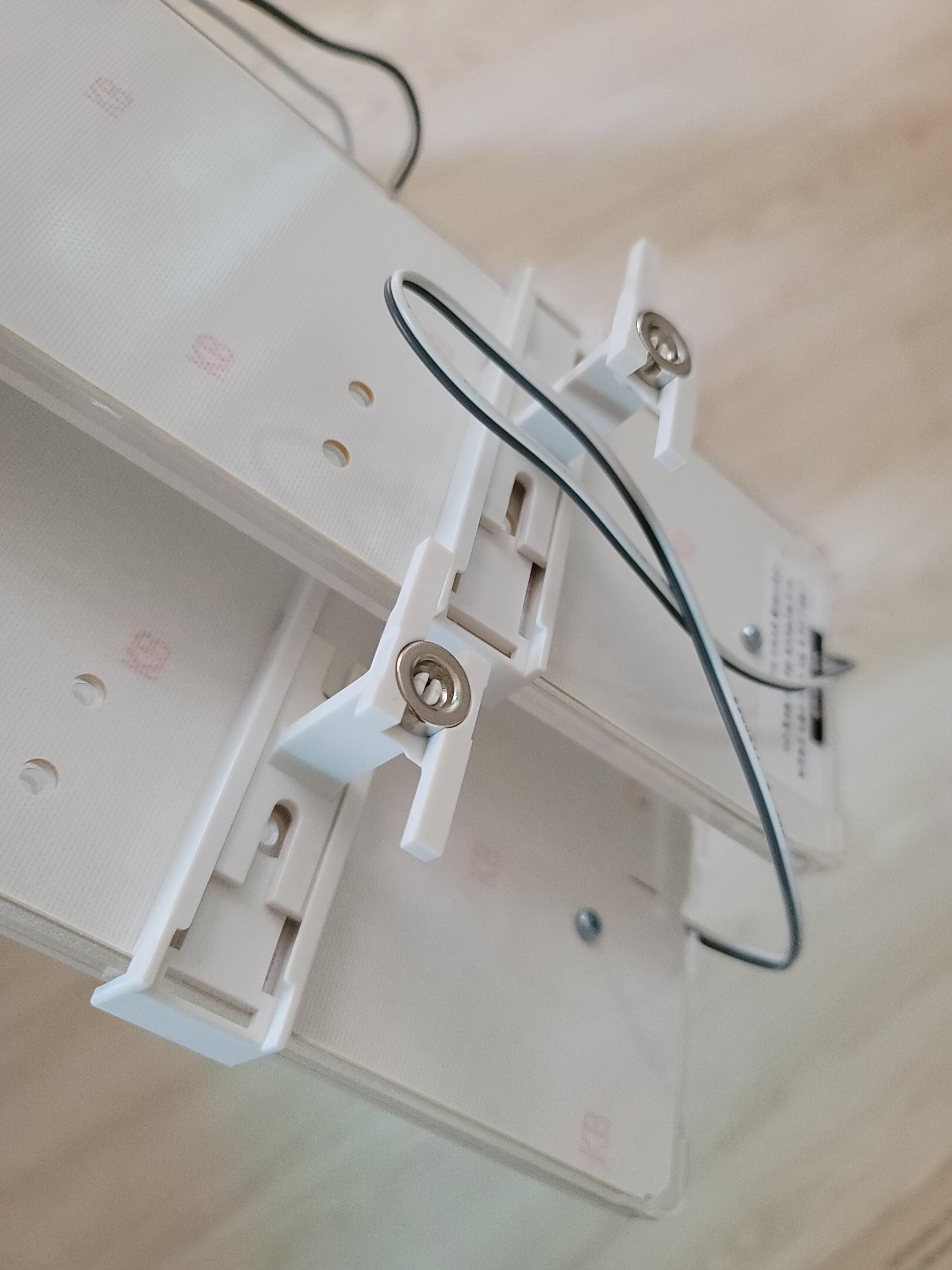 가장 먼저 LED 뒷면 슬라이드에 강력 자석을 설치해줍니다. 자석이 아래로 보이도록 끼워주시면 됩니다. 끼워주신 후에 천장에 붙여주시면 됩니다. 알아서 붙기 때문에 추가 작업을 해주실 것이 전혀 없습니다. 고정이 되어 있기 때문에 배선 작업하기도 굉장히 편해요.