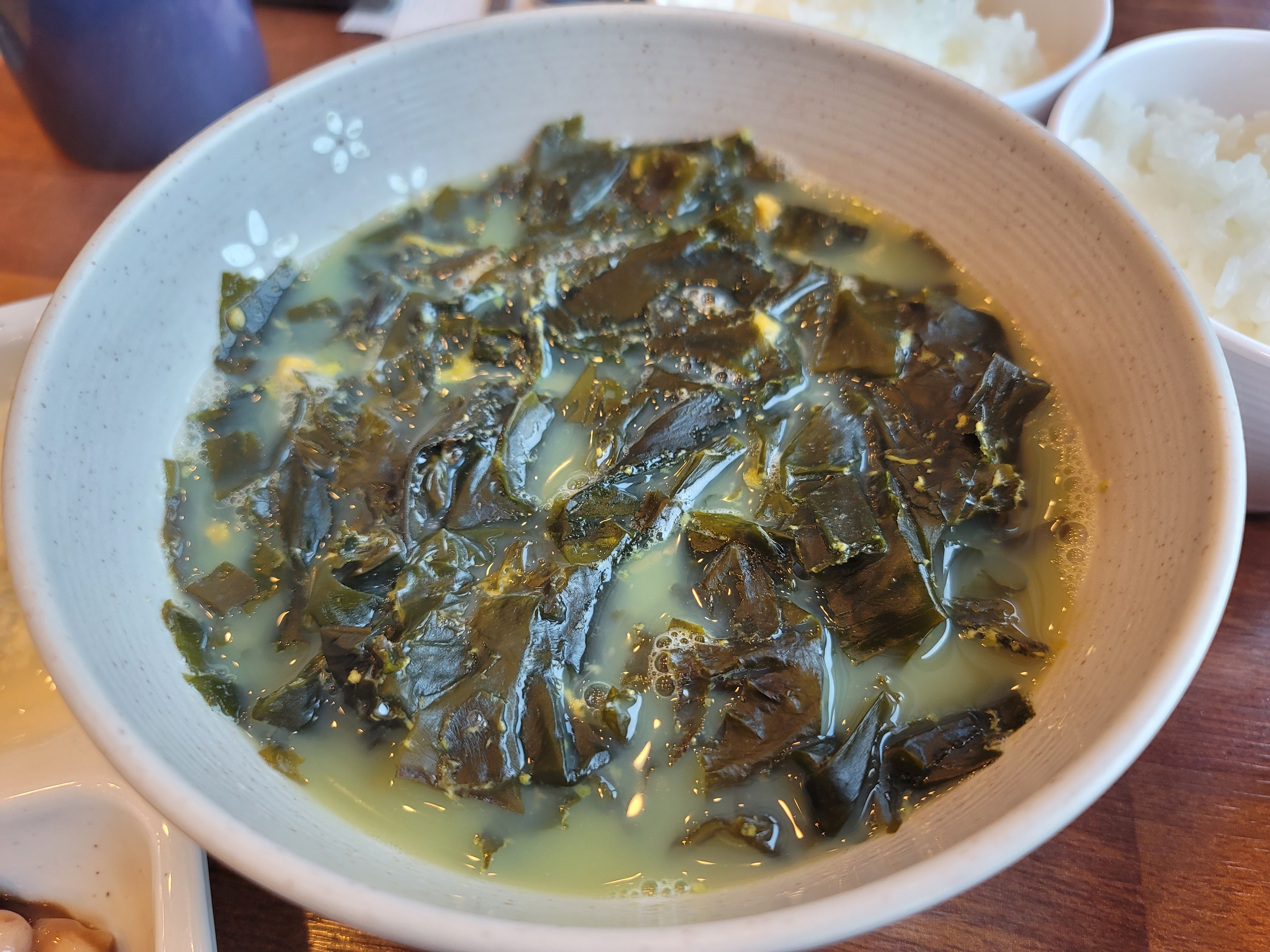 반찬으로 나오는 겨자숙주나물, 오징어조림, 김치, 순두부, 김, 팥율무조림 등 현지 특산 반찬도 꽤 별미입니다. 특히 팥율무조림은 달달하니 아이들 입맛에 딱이고요. 두부성애자인 저는 순두부가 그렇게 맛있더라고요. 함께 나온 미역국도 맛있습니다. 역시 바다의 고장 속초의 해산물 요리는 기본찬도 일품이구나 싶네요.