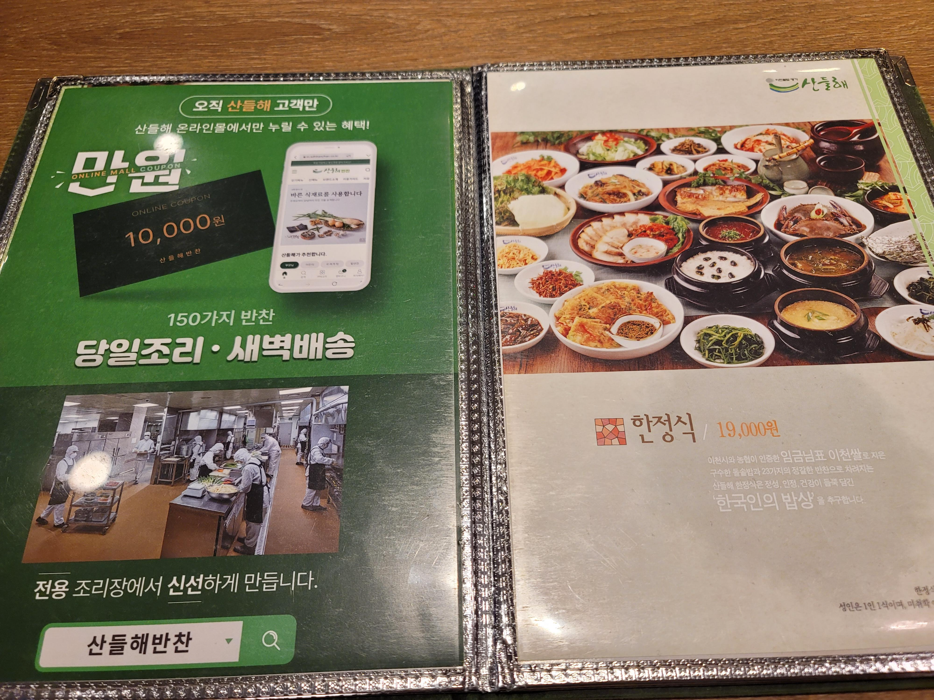 산들해에서는 반찬도 따로 판매합니다. 회원가입 시 1만원 혜택이 있는 쿠폰도 사용하실 수 있습니다. 워낙 반찬 하나하나 맛있기 때문에 사가셔서 드셔도 좋을 것 같습니다. 저희는 동네 근방에 수미찬이 있어서 반찬을 종종 사서 먹는데요. 기회가 되면 산들해 반찬도 도전해봐야겠습니다.