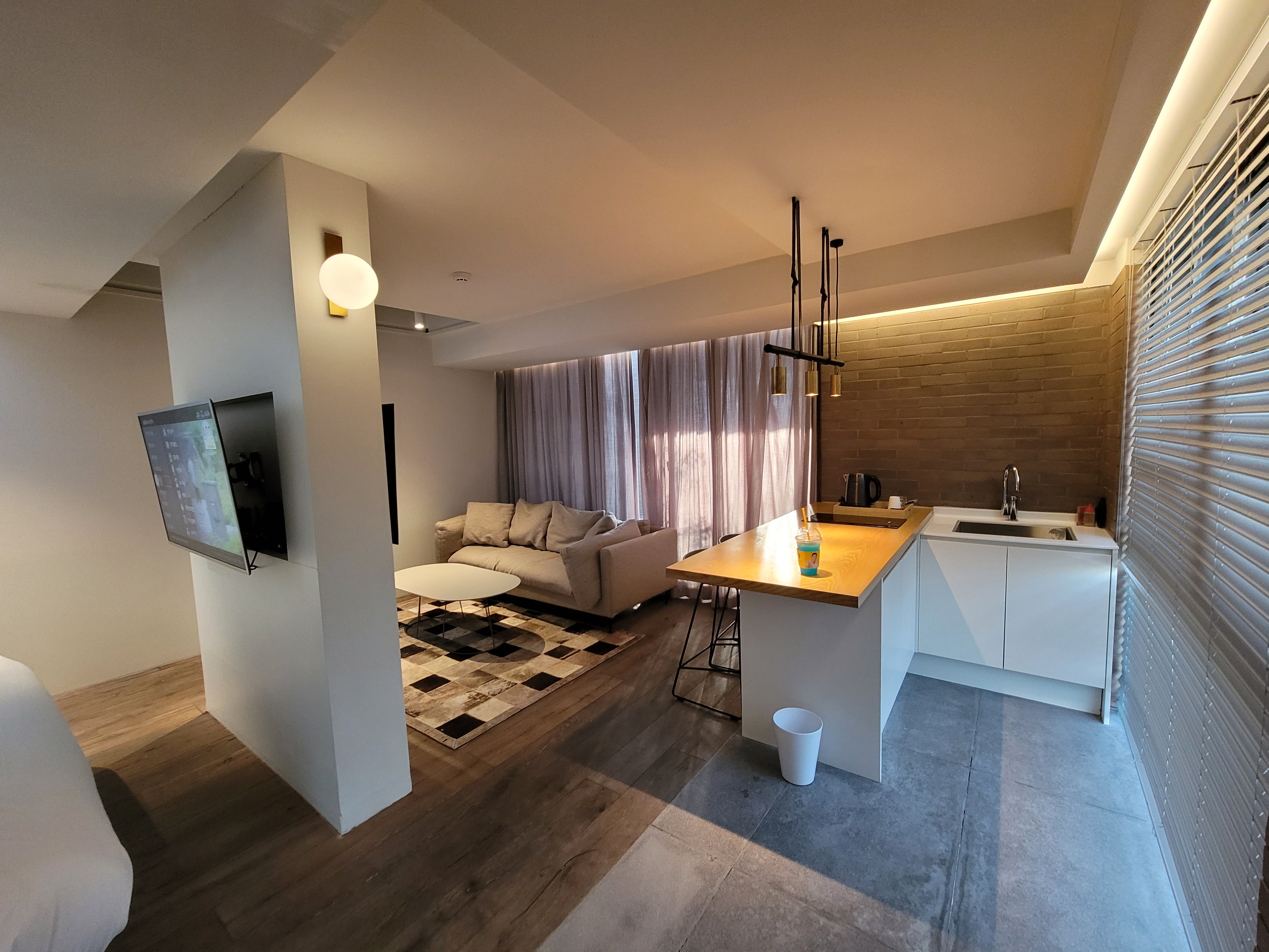 루프 스위트는 일단 넓습니다. 벽을 사이로 침대와 거실(소파) 공간이 나뉘어져 있고 각 면에 TV도 설치되어 있습니다. 조리 시설도 갖춰져 있어서 시장에서 사서 드셔도 좋습니다. 저희는 족발을 사와서 먹고 아침에 냄비에 데워서 먹었어요ㅎㅎ냉장고에 물은 4병이 있어서 1박 2일 목타지 않습니다.