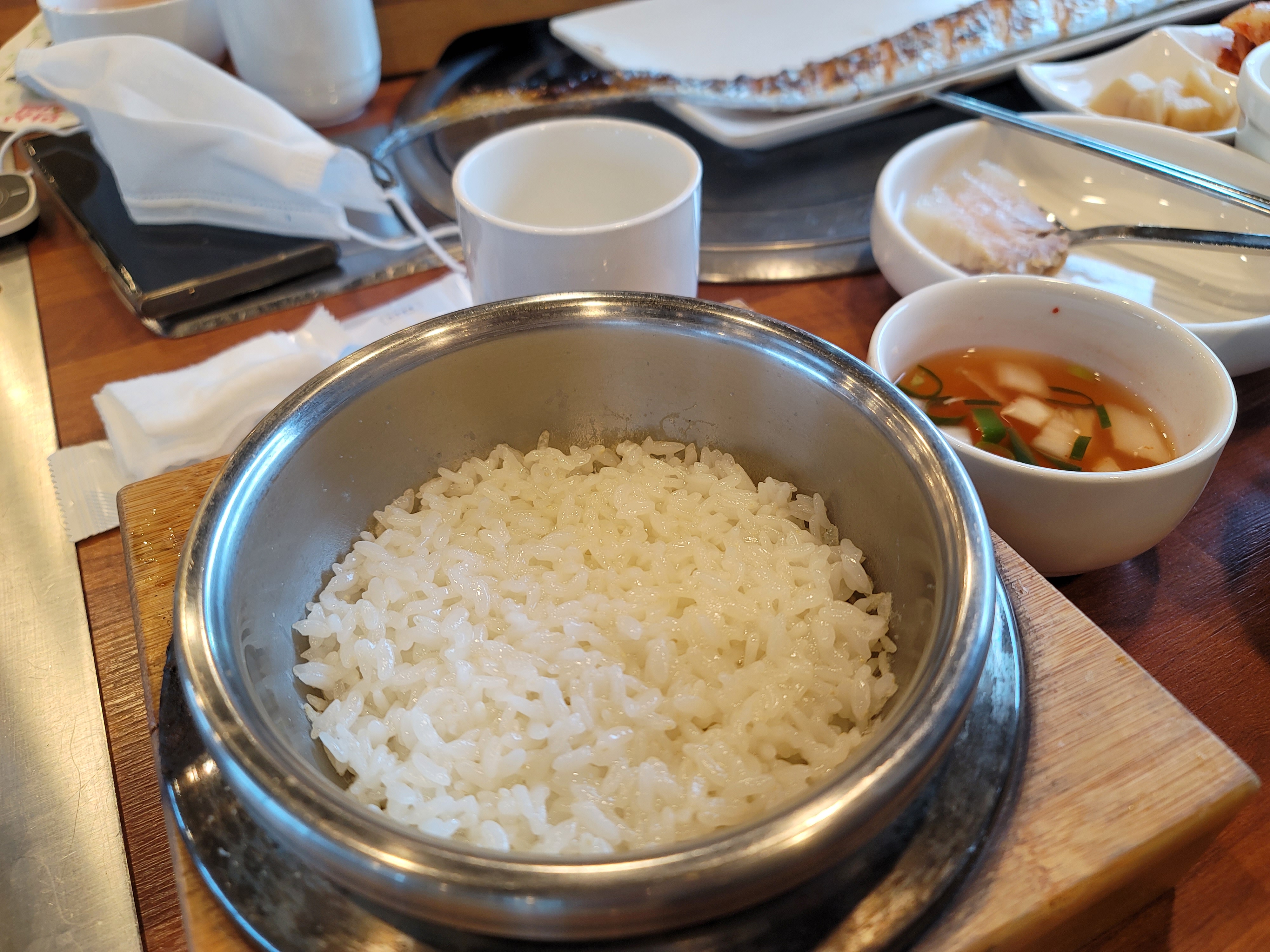 에피타이저로 나오는 요리들 면면히 맛이 좋습니다. 특히 갈치회는 비릴 것 같지만 생갈치의 위엄은 어디 안가네요. 비리지 않은 갈치회는 삼원정입니다. 함께 나오는 수육도 맛있고요. 갈치가 나오기 전에 배를 채우는 기분이네요. 돌솥밥까지 완벽한 구성 아닙니까?!
