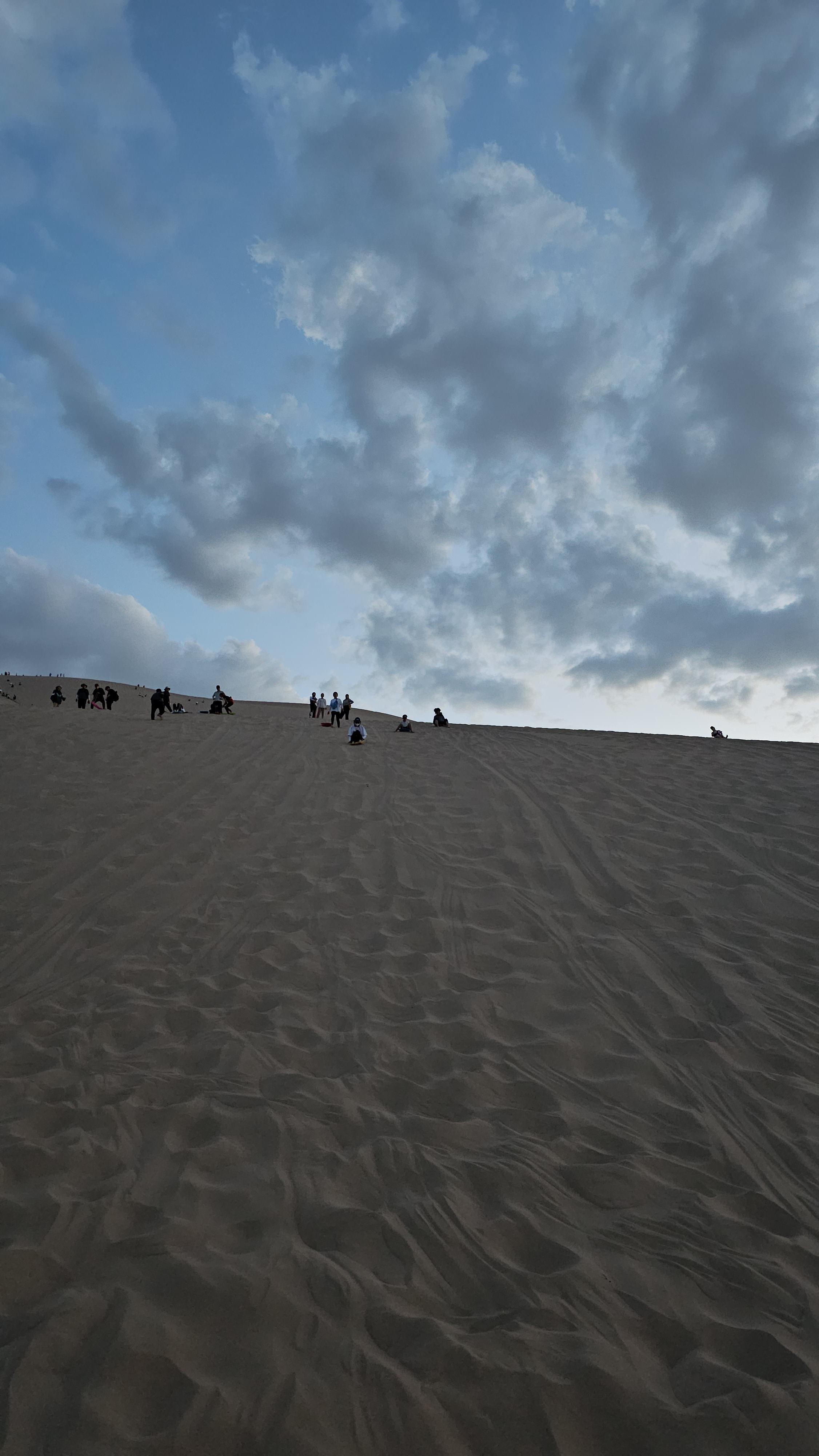 몽골 시간으로 저녁 6시 즈음 고비사막을 오르기 시작했습니다. 코 앞에서 보니 뭐 저 정도는 금새 갈 것 같은데?라는 호기로움이 올라왔죠. 고비사막에서 모래 썰매를 기대하며 당당한 발걸음을 내딛였지만 채 30분도 되지 않아 그런 제 자신을 호되게 혼냈습니다. 괜히 세계 3대 사막이 아니구나. 아찔한 마음이었지만 모든 식수를 제가 가지고 있었기 때문에 제 삶을 걸고(?) 정상을 올랐습니다. (어머니 1등, 아들 2등, 와이프 3등, 전 꼴등..)