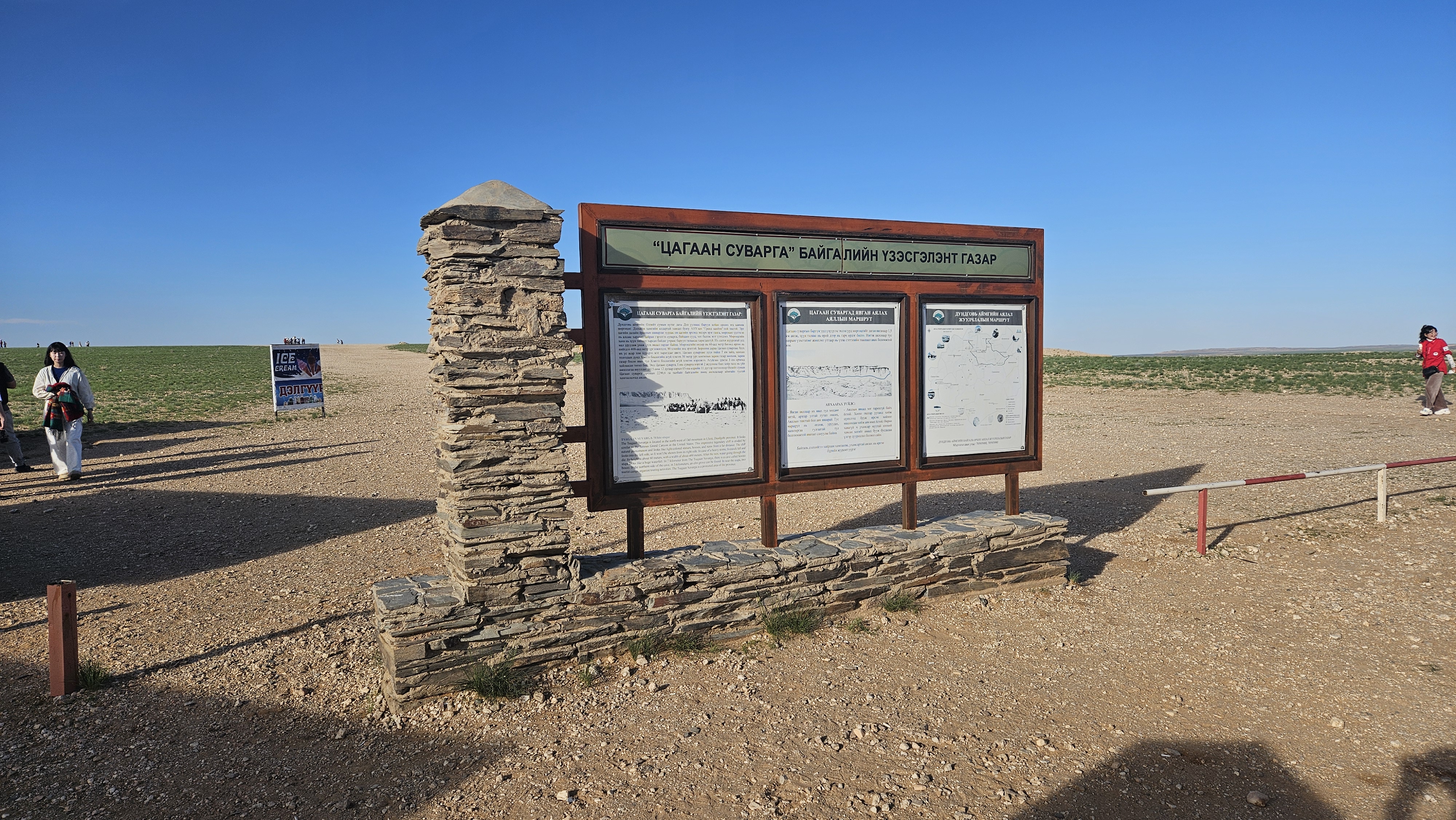 그리고 차강소브라가에 가실 때, 꼭 기억하고 가셔야 할 것 중 하나는 현지 유목민들은 차강소브라가를 신성한 장소로 여긴다고 합니다. 때문에 큰 소리를 내거나 돌을 던지는 것을 금기 시하고 있습니다. 오랜 정령이 깃들어 있기 때문에 자연을 존중해야 행운을 얻어가실 수 있다고 하니 웅장함을 한껏 즐기시되 고성방가는 금해주세요!