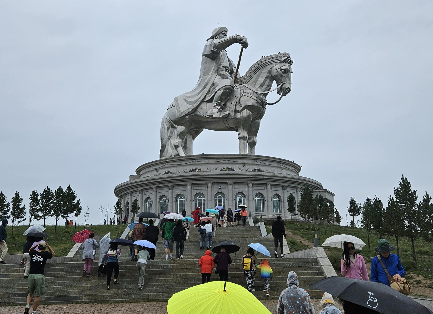 비가 추적추적 내리기 시작했습니다. 테를지 국립공원은 몽골에서 가장 유명한 국립공원 중 하나로 울란바토르에서 가장 가까운 자연 관광지입니다. 초원과 기암괴석, 강과 숲이 어우러진 몽골의 대표 휴양지죠. 유목민 체험, 승마, 하이킹, 캠핑 등 다양한 액티비티를 즐길수 있습니다.몽골어로 테를지는 철쭉을 의미하는데 봄과 여름에 들판 가득 야생화가 핀다고 합니다. 특히 몽골 초원과 시베리아 타이가(침엽수림)이 만나는 독특한 생태계를 즐길 수 있는 곳입니다. 테를지 국립공원에서 유명한 것 중 하나는 독특한 암석 지형인데요. 거북바위는 몽골에서 꼭 사진을 찍고 가야 하는 것 중 하나죠.태를지 국립공원 내 위치한 불교 사원인 아리아발 사원도 전망 좋기로 유명한데요. 몽골 불교의 명상 사원으로 자연 속에서 고요한 분위기를 만끽할 수 있습니다. 사원까지 오르는 계단에 불교의 가르침이 새겨져 있다고 하는데요. 무슨 말인지는 이해를 못하고 내려왔습니다^^; 테를지 입구에는 독수리와 매를 만져볼 수 있습니다. 쬐끔 무섭고 안쓰럽기는 하지만 눈 앞에서 독수리와 매를 보니 신기하더라고요.