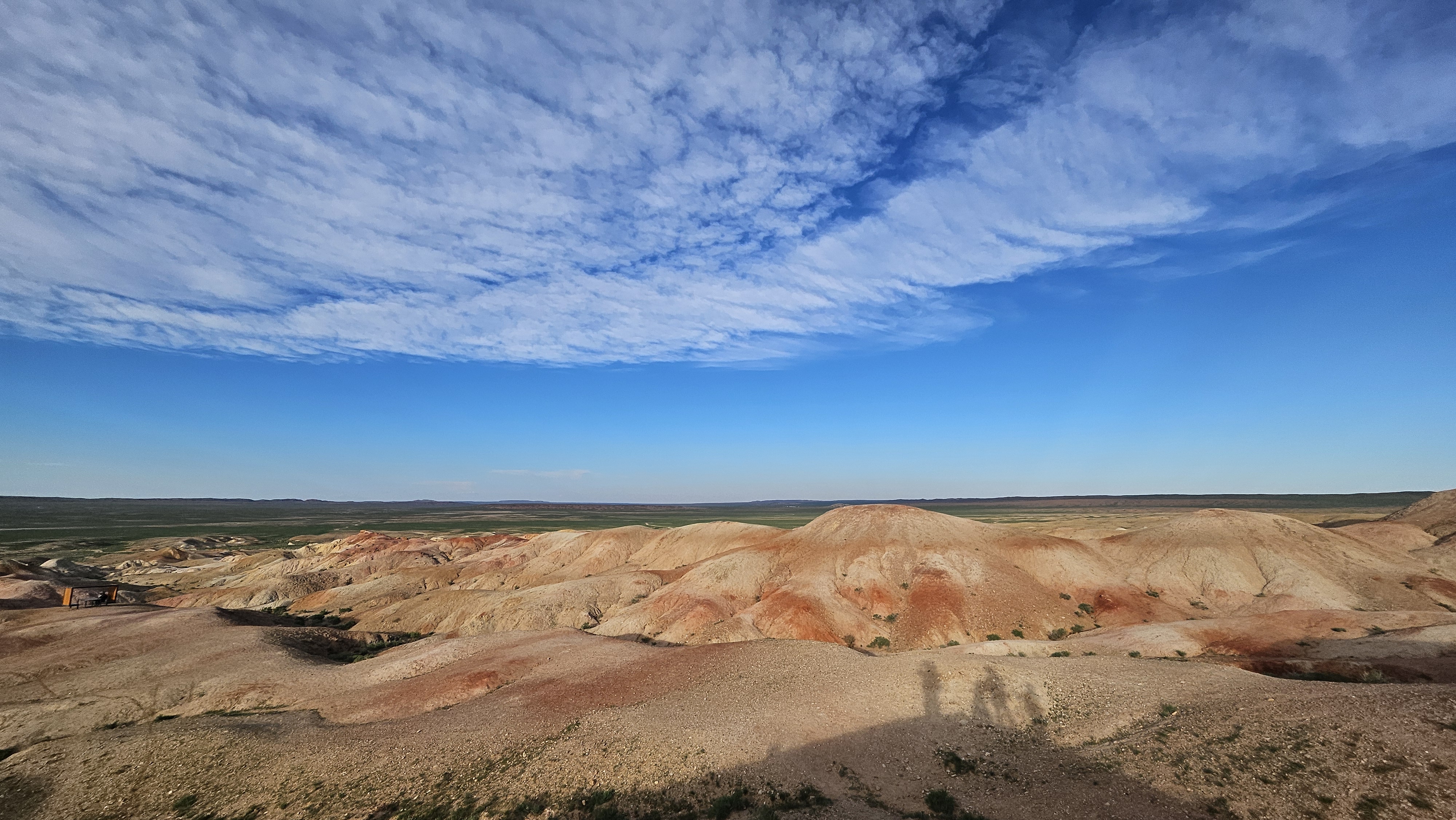 하.지.만. DAY1 붉은 절벽, 차강소르라가라고 시작한 것은 낮과 저녁 햇빛에 따라 절벽 색상이 변하기 때문인데요. 아침에는 흰색과 베이지색, 그리고 오후에는 붉은 빛, 일몰에는 주황색 또는 분홍색으로 절벽이 물든다고 합니다. 저희가 도착했을 때는 붉은 빛의 절벽으로 보였답니다. 과거에 바다였더 지역이 융기한 후 수천만 년 동안 바람과 물에 의해 침식되면서 형성된 지역으로 계단식 절벽과 줄무늬 패턴이 아주 인상 깊습니다. 특히 약 2~3억 년 전 암석층이 드러나 있는데, 공룡과 선사시대 생물의 흔적이 발견되었다고 하니 지구의 역사 속에 들어온 느낌이었습니다.