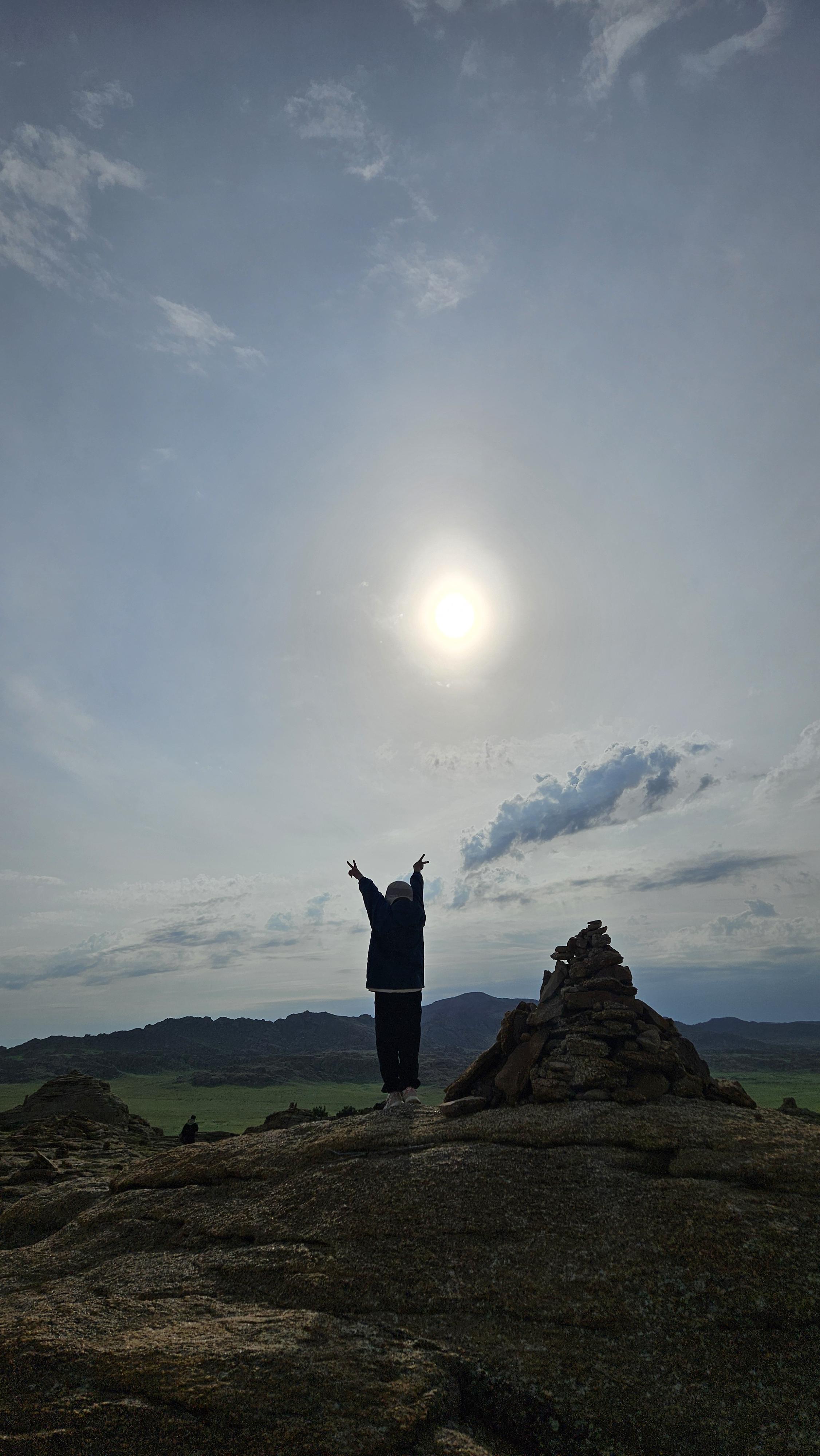뮤직이즈마이라이프, 블루투스 스피커에서 터져나오는 음악과 함께 달리고 달려서 바가가츠린촐로에 도착합니다. 몽골 중부 둔드고비 아이막(Dundgovi Aimag) 지역에 위치하고 있으며 고도 1,768m로 여름에는 덥고 겨울에 매~우 추운 곳입니다. '바가(Baga)'는 "작은", '가즈린(Gazriin)'은 "땅", '촐로(Chuluu)'는 "바위"라는 뜻으로, 즉 <작은 땅의 바위>라는 의미입니다. 몽골의 다양한 화강암 지형 중 하나로 기암괴석이 펼쳐진 독특한 풍경을 자랑합니다.