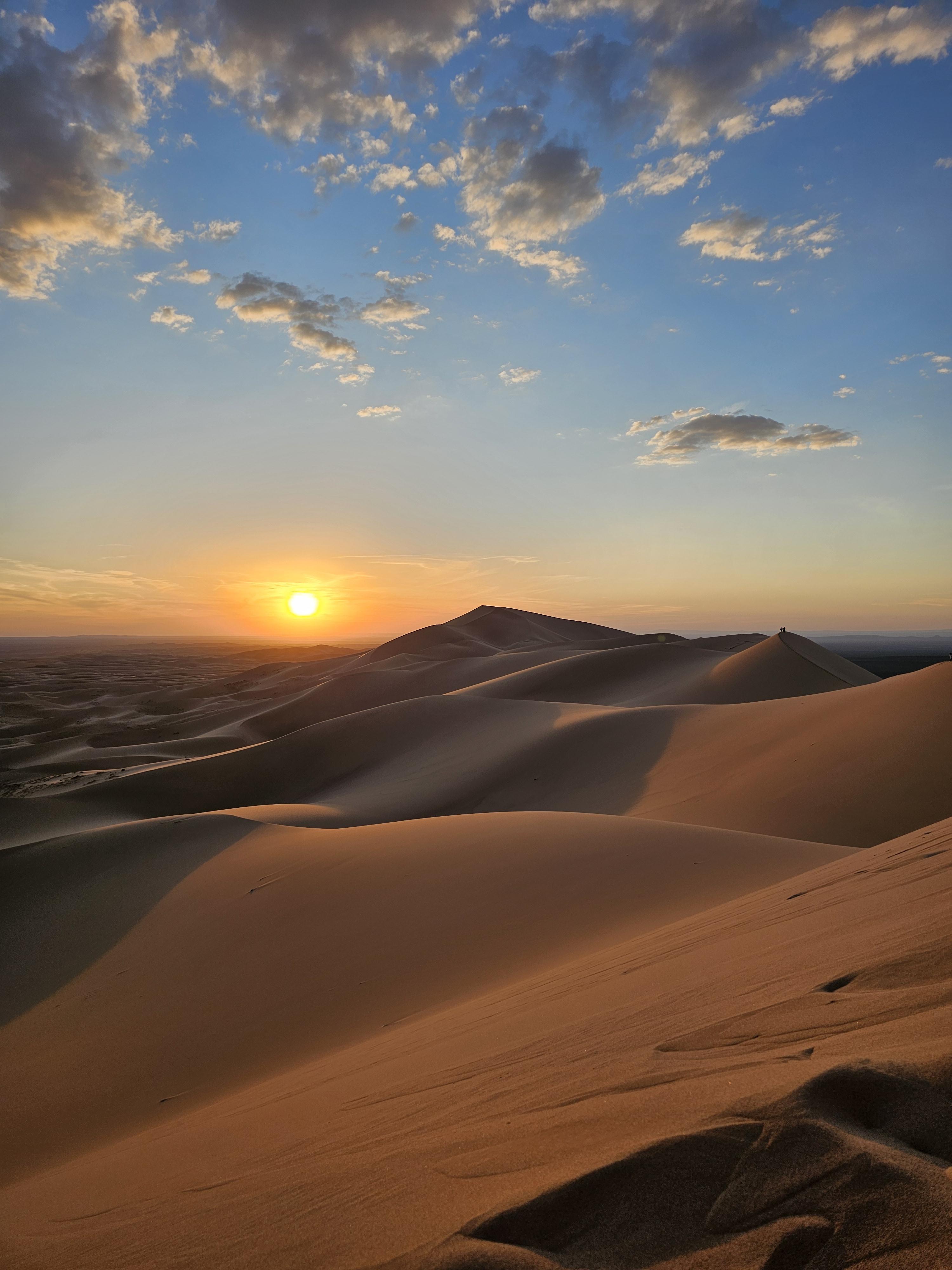 고비사막(Gobi Desert)는 세계에서 다섯 번째 큰 사막이자 아시아에서는 가장 넓은 사막입니다. 몽골과 중국의 국경을 따라 펼쳐진 광대한 지역으로 세계 3대 사막으로도 꼽히죠. 북극과 남극과 같은 극지 사막을 빼면 사하라사막(아프리카), 아라비아사막(중) 그리고 고비사막이 열대 사막으로 세계 3대 사막이라고 합니다. 고비사막은 모래 언덕 뿐 아니라 바위산, 협곡, 초원, 오아시스 등 독특한 생태계를 가졌을 뿐 아니라, 공룡 화석이 발견된 세계적인 고생물학적 유적지이기도 합니다. 뜨거운 낮에는 올라갈 수가 없기 때문에 낮에는 낙타를 타고 하루를 즐겼습니다.